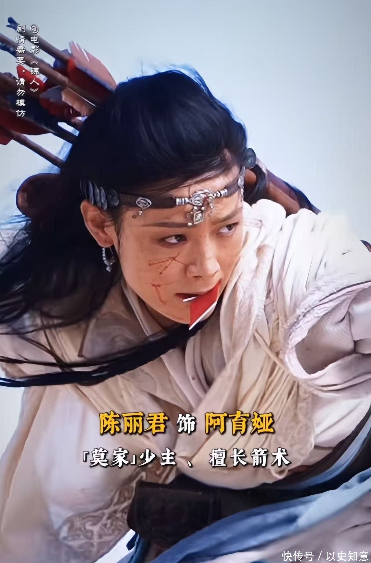 预报片中,她饰演的突厥女战神阿育娅身穿民族作风衣饰,手腕佩带皮质护具,腰悬弯刀,使命箭囊,额前银饰耀眼冷光,与飘渺大漠情投意合。