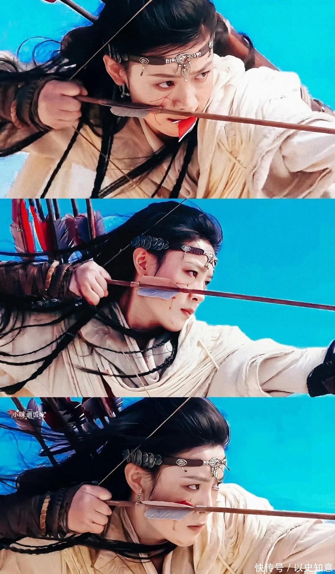 从零基础学骑马,到在驰骋马背上完成下腰射箭等高难动作,每一个细节都干净利落、英姿飒爽。她的眼神坚毅决然,充满杀伐之气,尤其是咬住箭羽搭弓的那刹那,凌厉之气直击东说念主心,酬酢平台片刻刷屏热议。