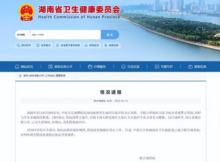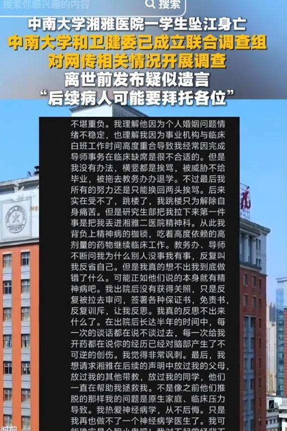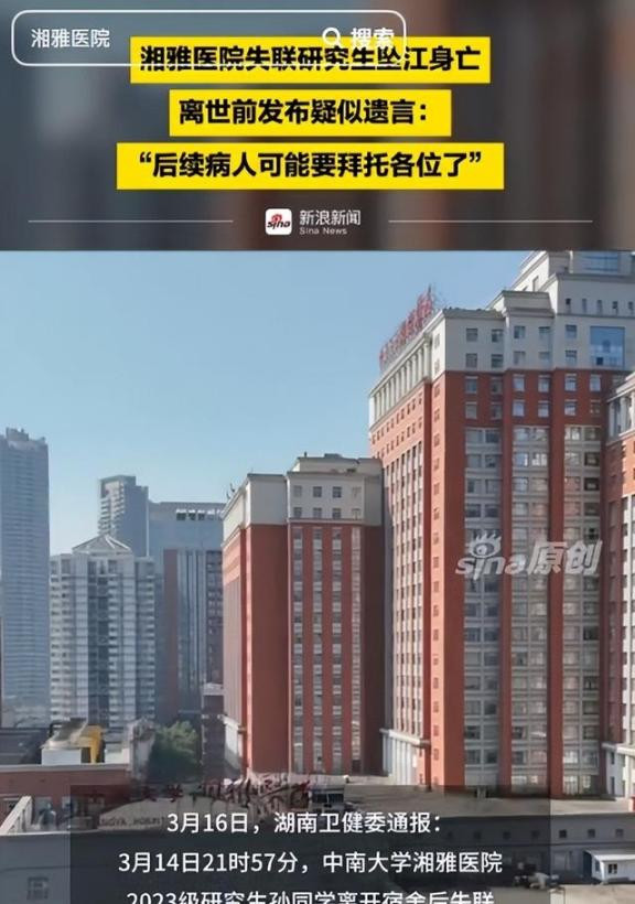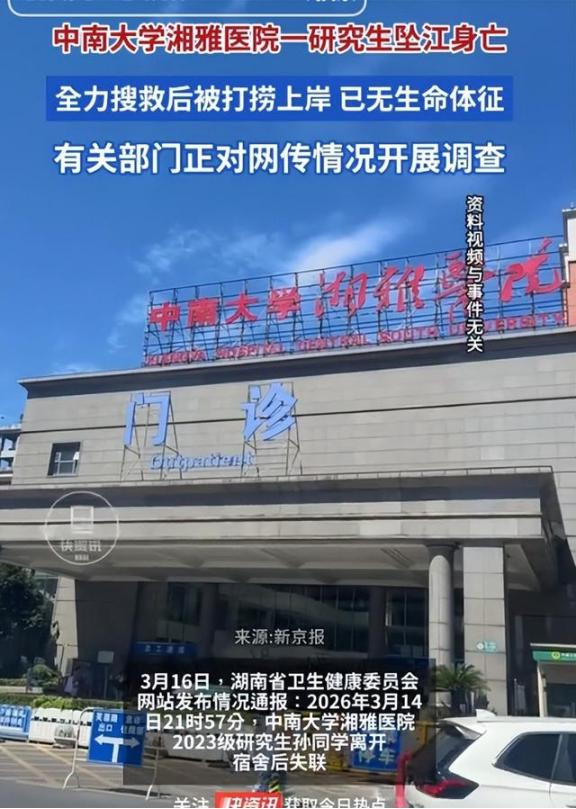 2026年3月14号的更阑,长沙橘子洲头的江水冰凉刺骨。中南大学湘雅病院2023级盘考生孙同学,永久地离开了这个全国,年仅25岁。