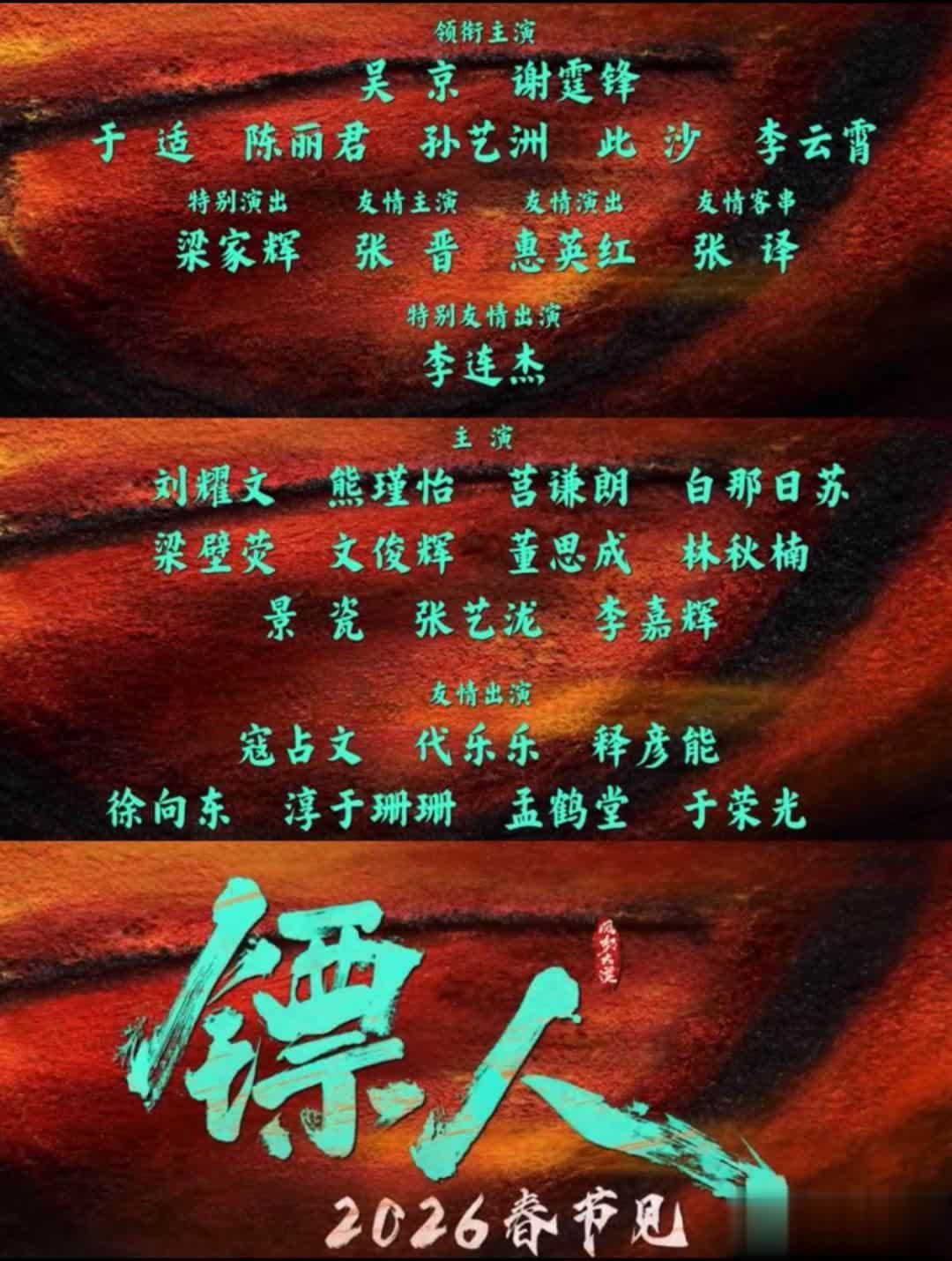 先看声势:袁和平执导,吴京、俞白眉监制;吴京、谢霆锋、于适、陈丽君、孙艺洲、此沙、李云端领衔主演,梁家辉绝顶上演,张晋友情主演,惠英红友情上演,张译友情客串,李连杰绝顶友情出演;刘耀文、熊瑾怡、莒谦朗、白那日苏、梁壁荧、文俊辉、董想成、林秋楠、景瓷、张艺泷、李嘉辉主演,寇占文、代乐乐、释彦能、徐向东、淳于珊珊、孟鹤堂、于荣光友情出演。